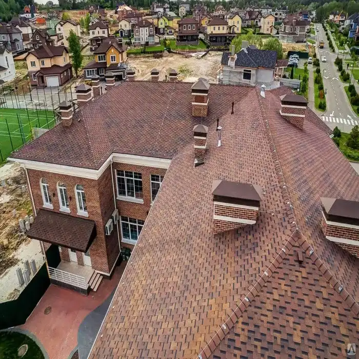 Гибкая черепица может применяться не только на малоэтажных жилых зданиях, но и при строительстве административных, жилых многоэтажных и других типов зданий.